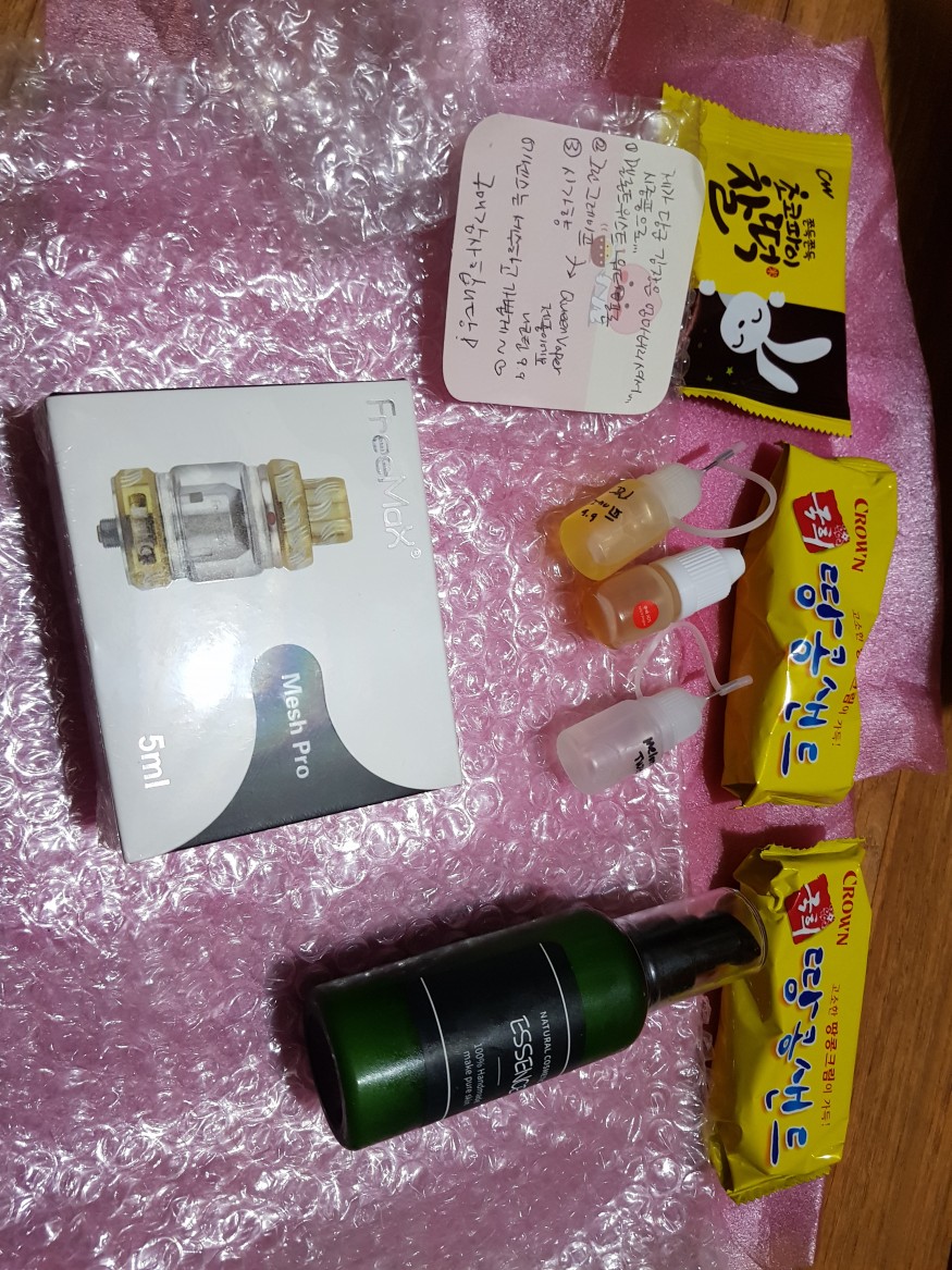 맛있는 과자도 챙겨주시고 액상도 챙겨주시고 에센스에 쪽지까지..