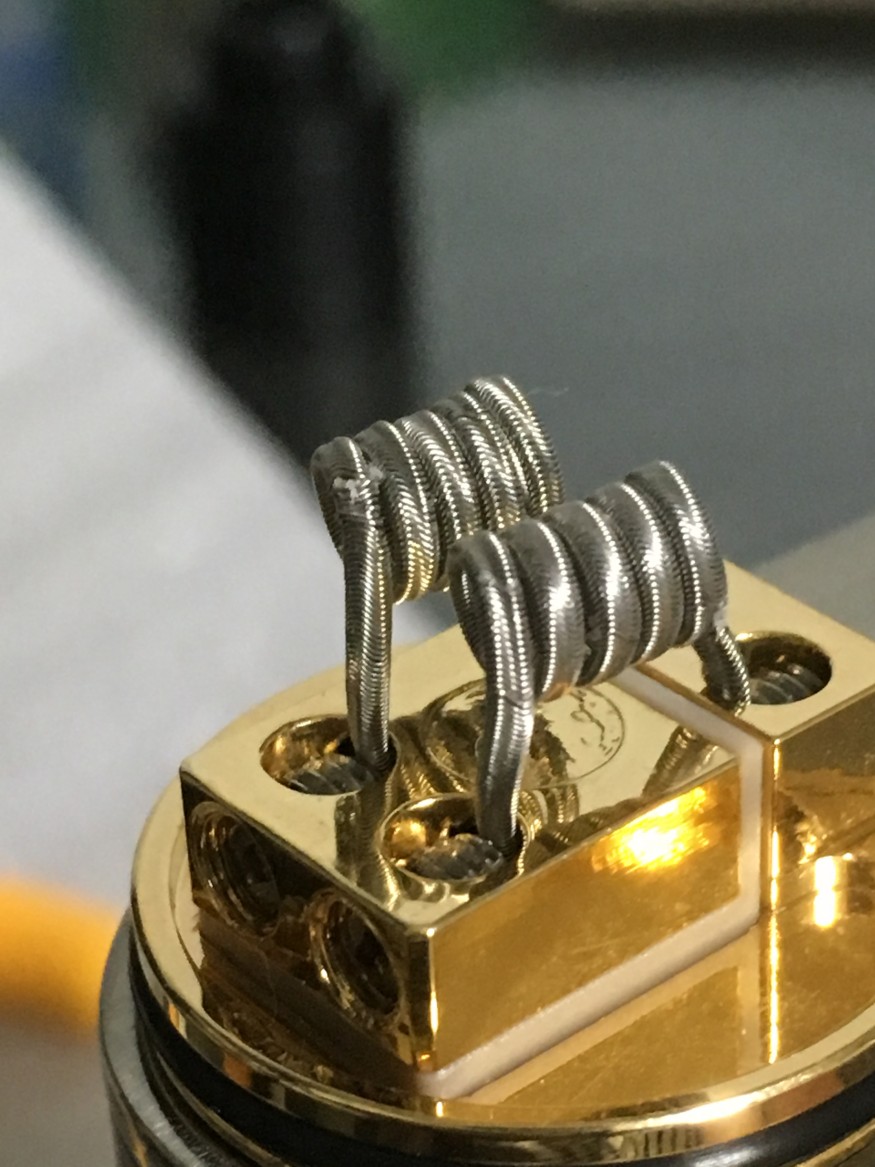 액상과 함께 나눔받은 수제 코일, 28코어에 34랩핑(맞나...) 한쌍하고 26코어에 34랩핑 한쌍 중 28코어짜리를 써봤습니다