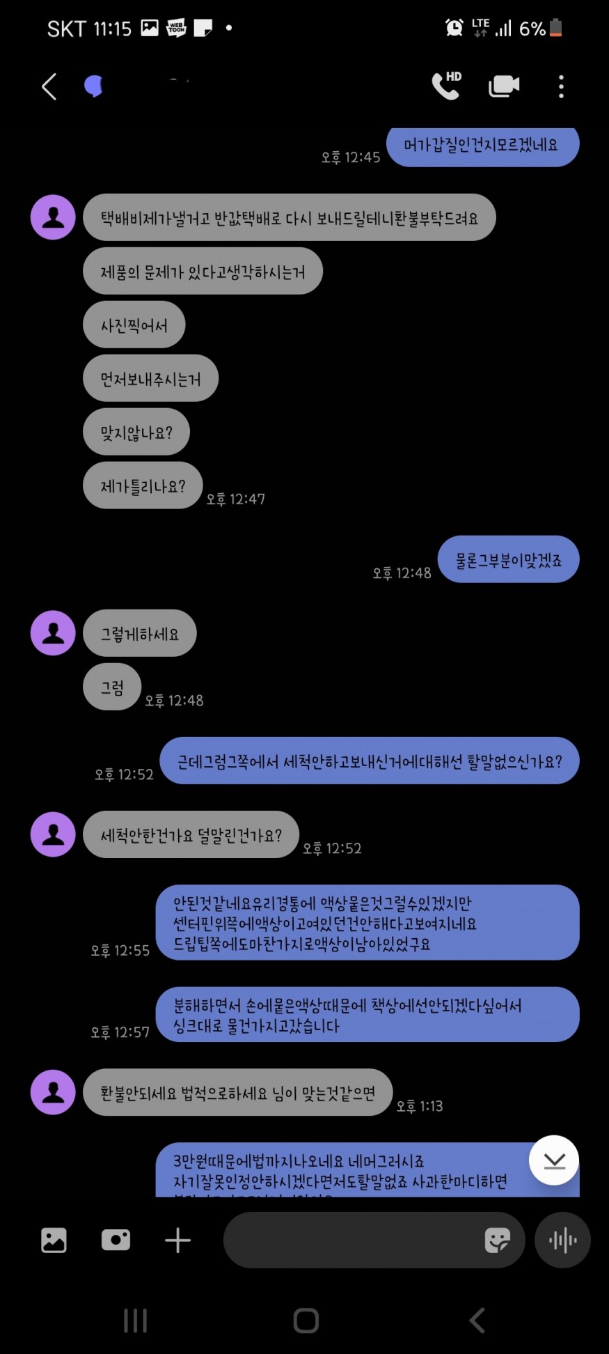 너무화가나서 판매자한테문자를 보냈습니다