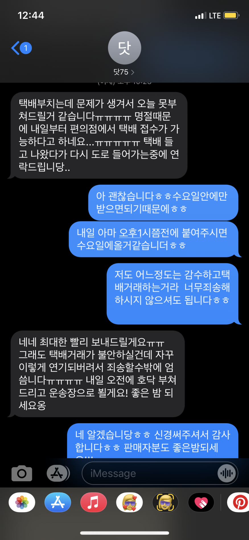 고의가아닌 추석때문에 불가피하게 택배가 늦어졌음에도
