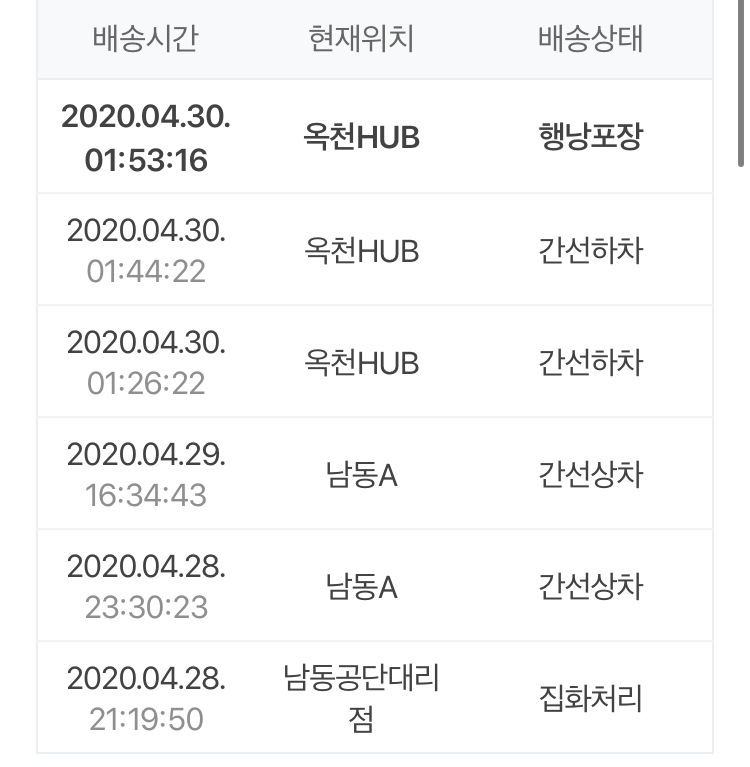 옥천에 들어갔길래 아 몇일 걸리겠구나 했는데 그 다음날 바로 오더라구여;;; 그래서 옥천이!!!!!!! 왠열!!! 어쩌다 물건 한방에 나가는 날이 맞으면 하루만에도 오긴 하지만 .... |