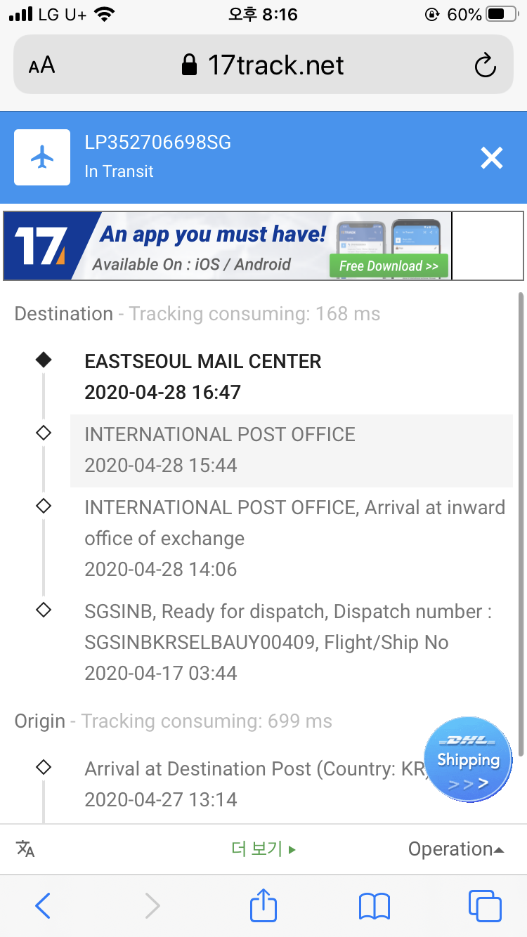 그게 어언 3월 23일이었는데 오늘 보니 제가 사는 근처인 동서울우체국에 도착한 모양이네요 ㅋㅋㅋㅋㅋ