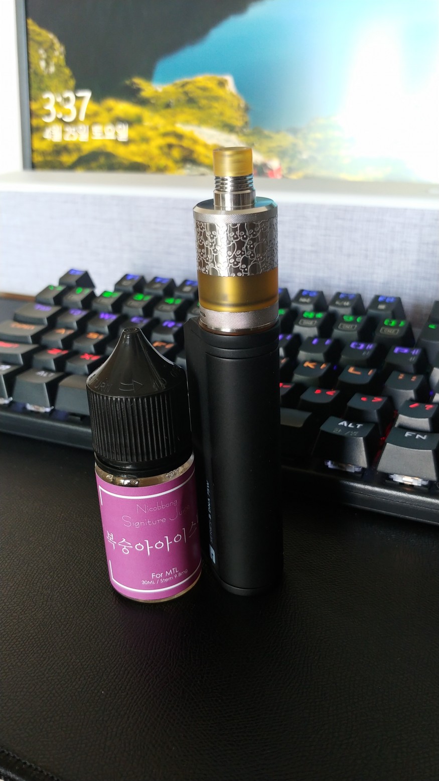 화학적인 맛이 아주 살짝 들숨에서 느껴지는데 거슬리는 정도는 아니네요. 복숭아 맛이 좀 더 강하면 더 좋을 거 같긴 하네요.
