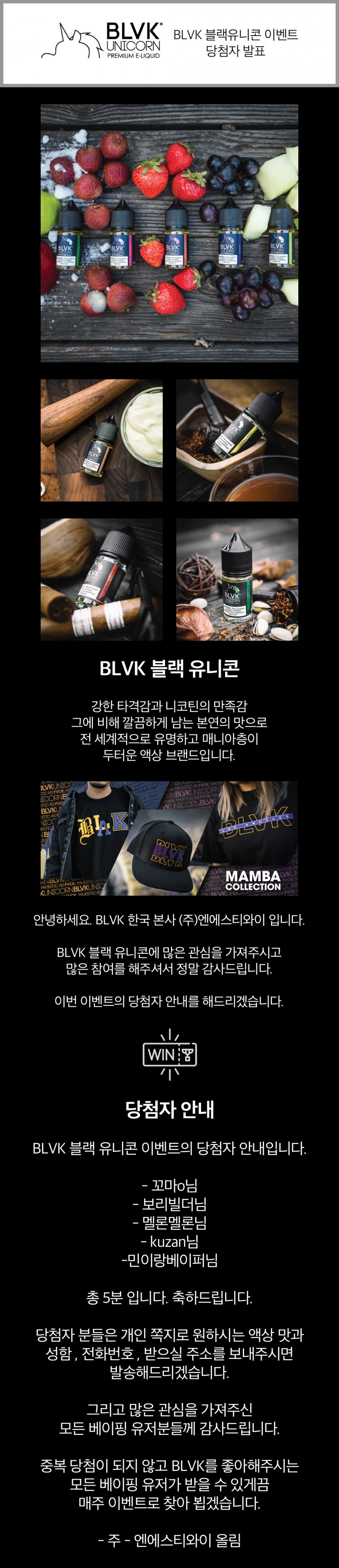 [당첨자발표]BLVK 블랙유니콘 액상 나눔 3차 이벤트당첨자… 댓글+27개