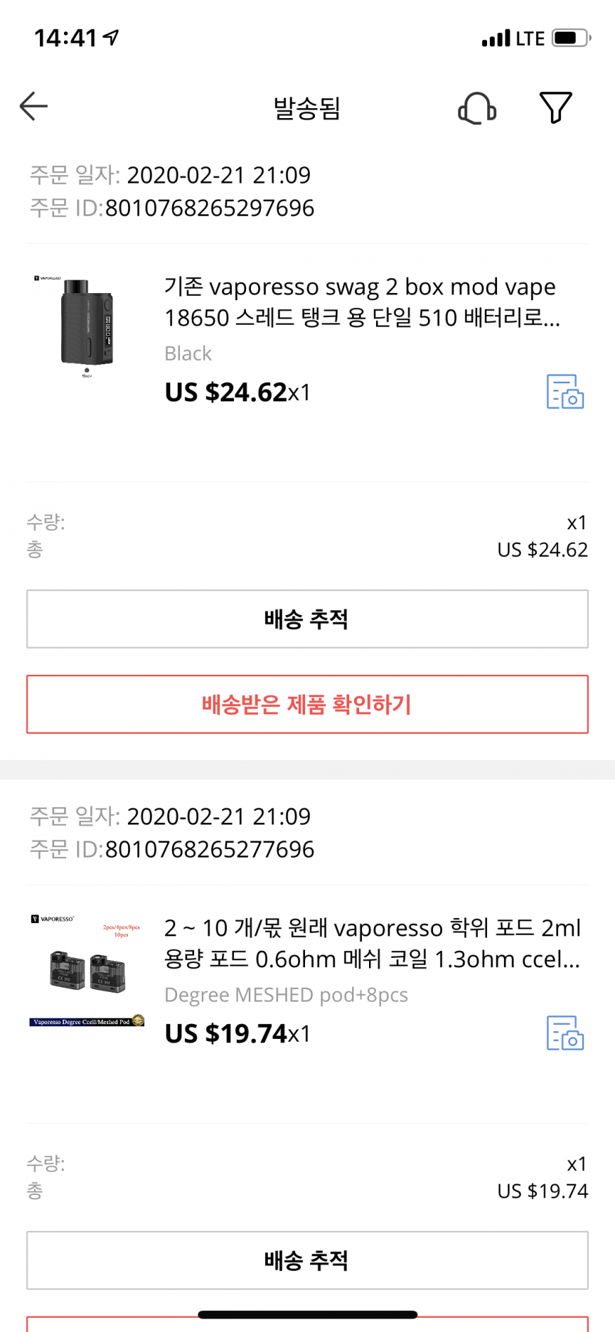 국내에 물량이 없어서 주문했더니