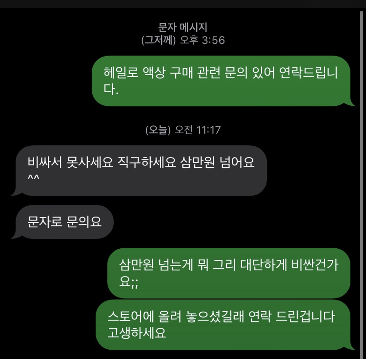 문자로 문의하니 응대가 이래요;;