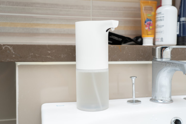 적당량의 손 세정제를 자동으로 펌핑해 줍니다