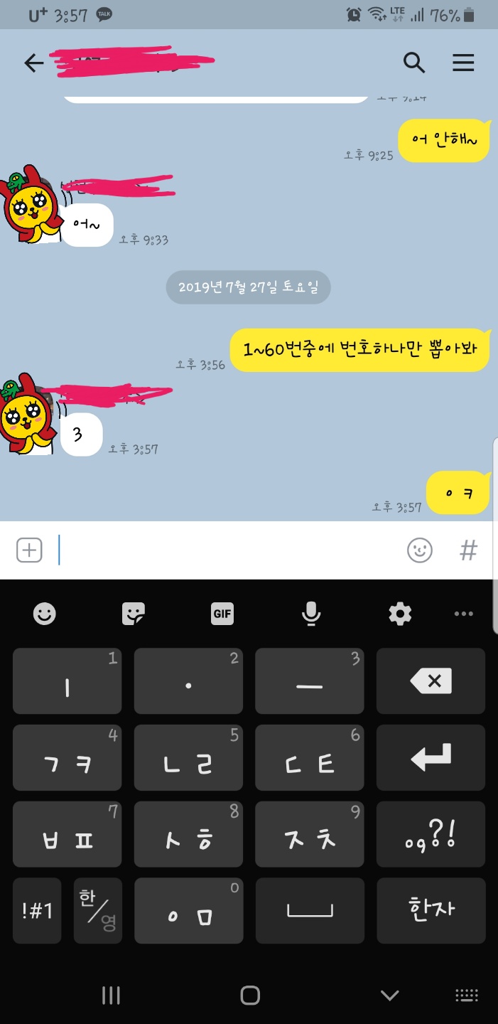 일본유학중인 친동생에게 번호뽑아 달라고 했네요ㅎㅎ