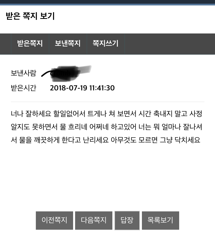 쪽지로 욕을 하시니 안좋게보이네요.. |
