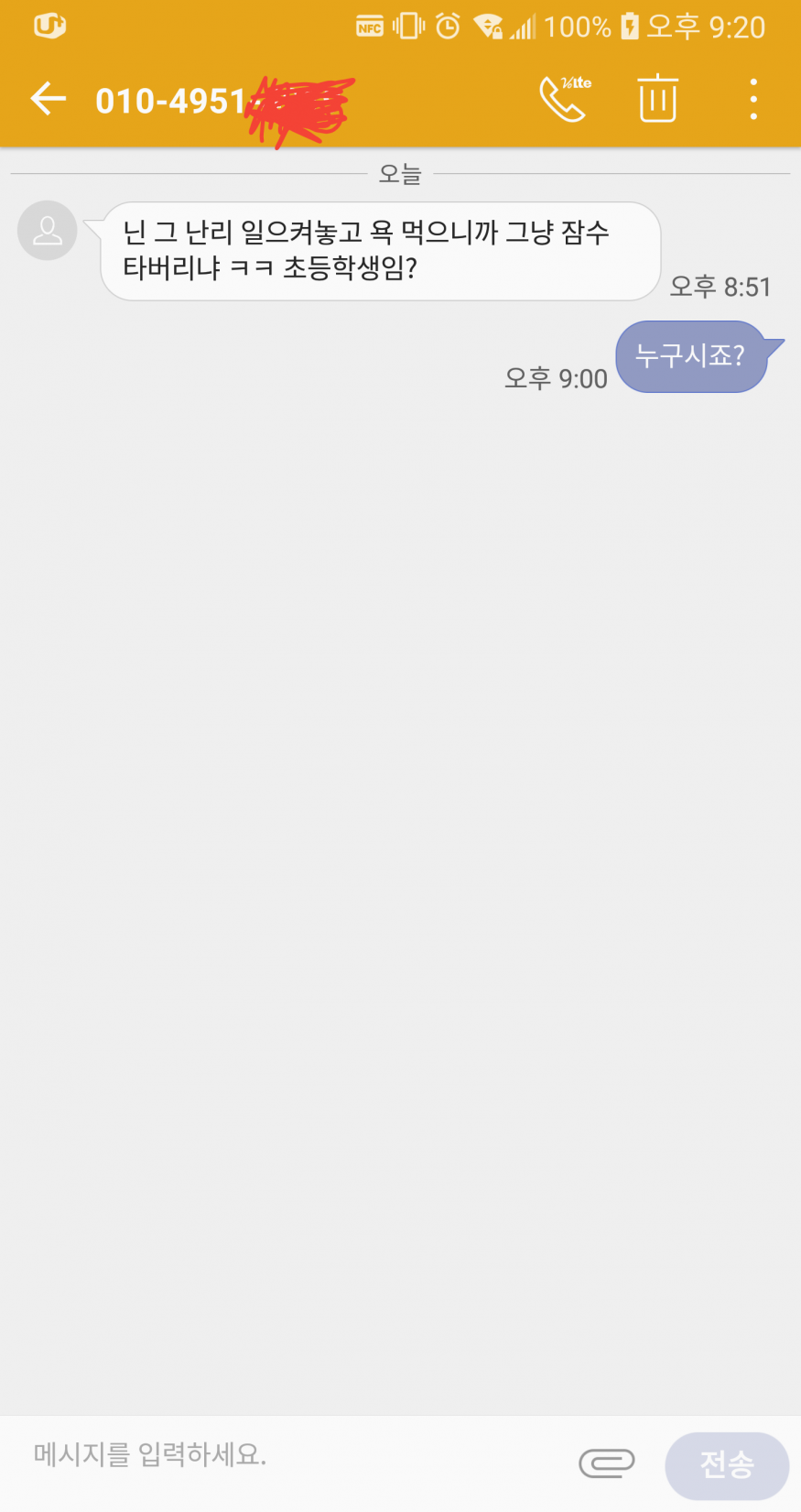 에휴 문자 보내는 꼬락서니 하고는..... ㅉㅉ