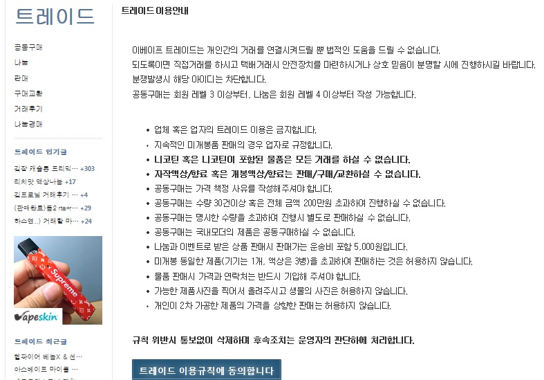 혹시나해서 트레이드 글쓰기 눌렀더니, 판매게시글 올리기전에 한번 읽어보고 넘어가는 시스템이었어요;;;