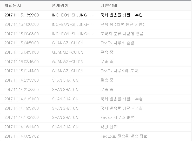 페덱스에서 내일 배송해준다는 연락까지 받았네요..