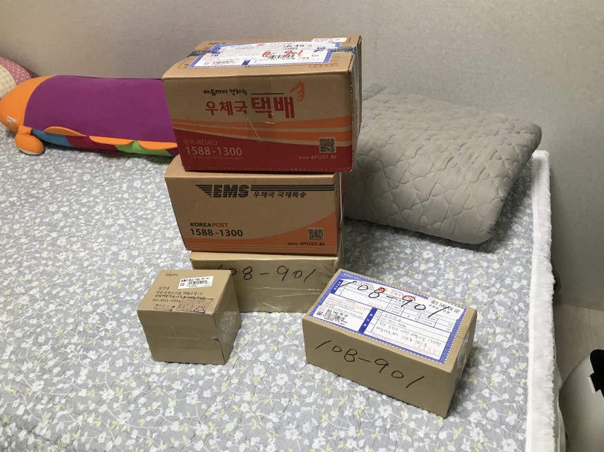 택배상자가 5개 머지