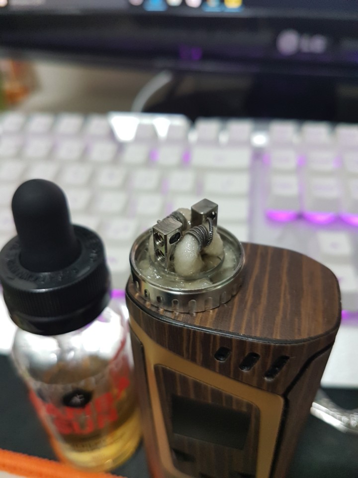 RDTA도 처음 해보는데 액상넣을때 튐현상이 심해서 터지는거 아닌가란 생각하며 뿜했었는데 오늘 보니깐 솜이 탔더라구요