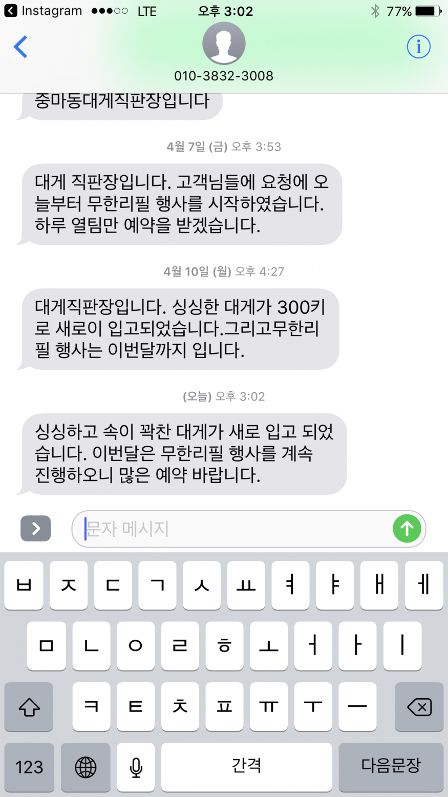 대게 무한리필행사 ㅋㅋ 한번갔더니 계속 광고문자옴