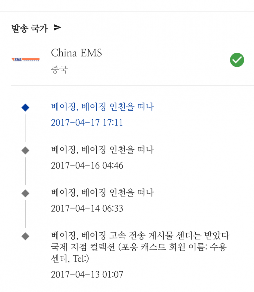 인천을 떠나 3번 후 디패 되더라구요. 돈 더 주고 이패킷을 햇는데 다른 분 같은날 주문한 차포랑 같이 배송 오더라구요. 전 이제 이패킷 안할겁니다. |