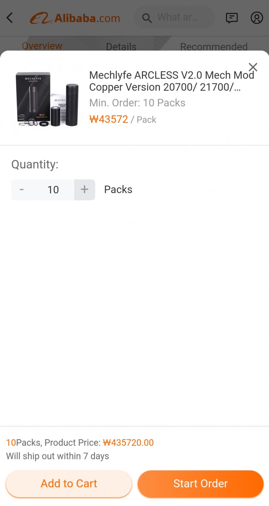 알리바바는 도매식으로 최소 단위 정해서 팔더라구용 대량 구매시 할인 들어가고 그랬어요 |