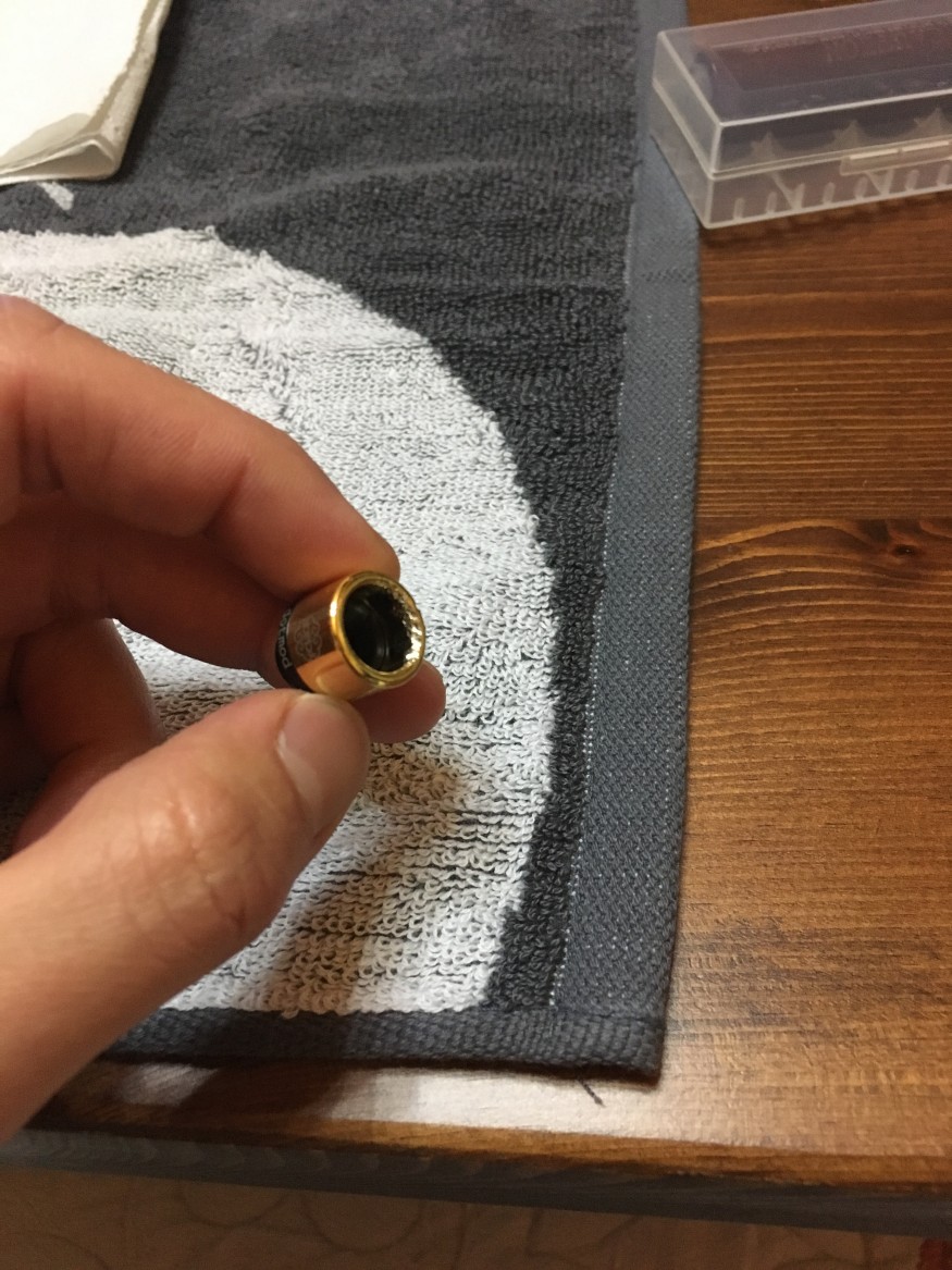판매할물건이라 천으로 닦아 높이가 낮은 탁자에 기기를 올려놓고 다른행동을하다가 강아지가 뭘 물고있는걸 봤습니다 급하게 뺏긴했는데 윗부분 도금된부분이 갈려있어서 사용하기에는 찝찝하겠다 싶어 빼놧었습니다