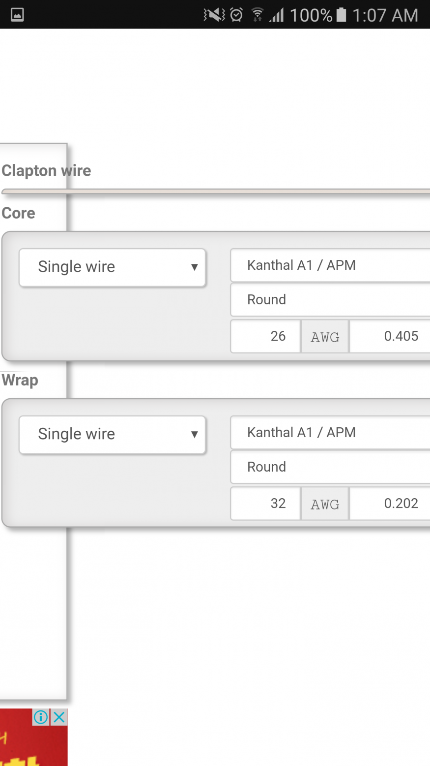 2) 2번째 사진에처럼 안에있는 코일 (Core) 와 감싸고 있는 코일(Wrap)의 게이지를 입력 하시고