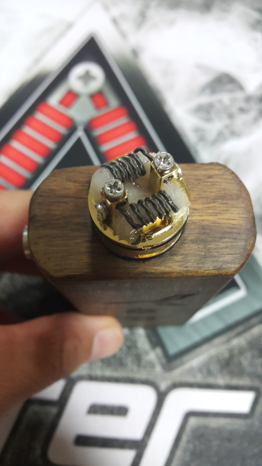 베이핑 후 드립캡 빼면 빌드덱 옆쪽으로 흥건... 하부 에어홀을 다 막아버리면 괜찮은데 상부 구멍만으로는 공기 유입이 부족한 느낌입니다. |