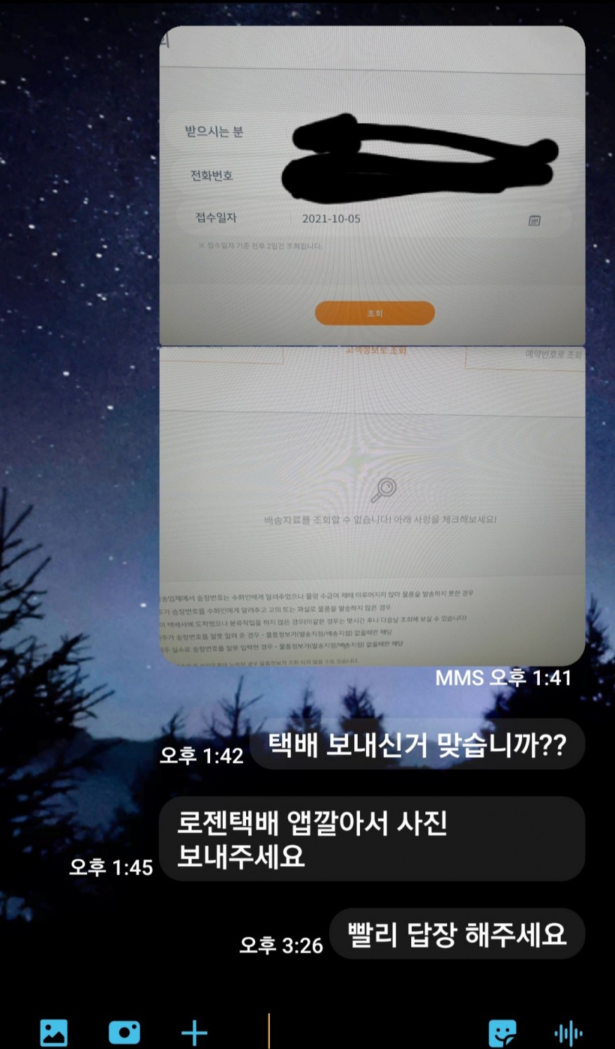 10월 5일에 보낸 물건이 오늘까지 안 와서 문자 보내봤더니 계속 무시해서 카카오톡으로 보내니까 다짜고짜 계좌번호를 알려달라고 합니다