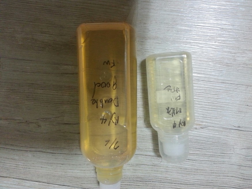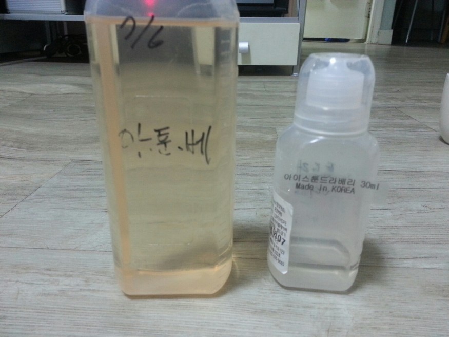 사진에 보시는것처럼 기존 담궈놨던 액상하고 확연히 색깔차이를 느낄수가 있네요..