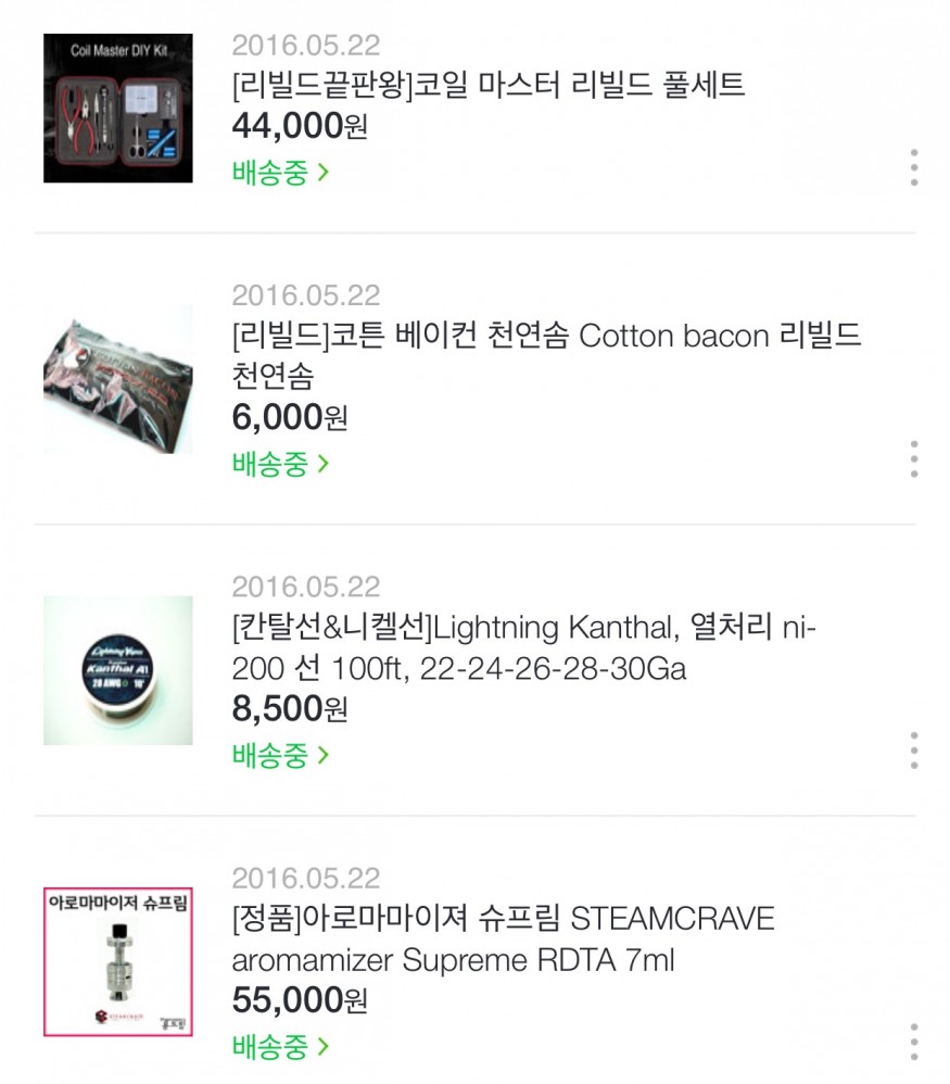 스샷은 구매한 것들 이구요..
