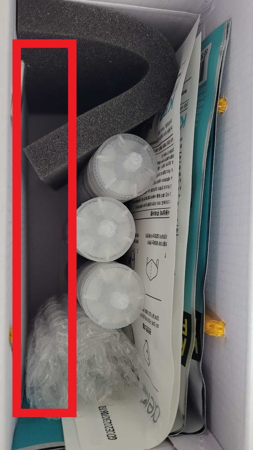 나름 물기 방지용으로 극세사 타월에 감싼 아이스팩 박스 내부 빨간 네모테두리 부분에 넣어서 보냈는데
