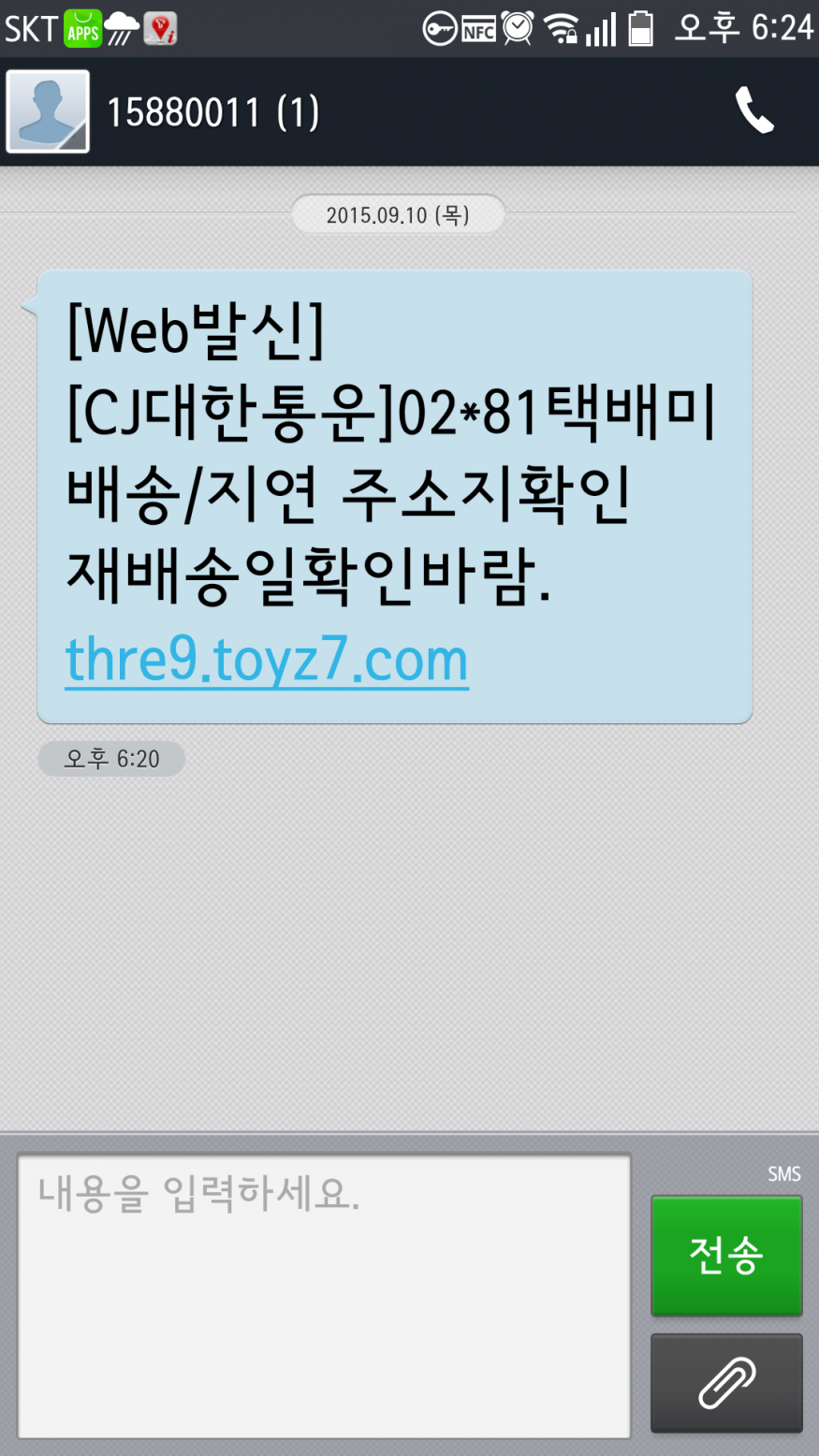 그렇다고 택배사에서 저런문자 받은적 한번도 없는데