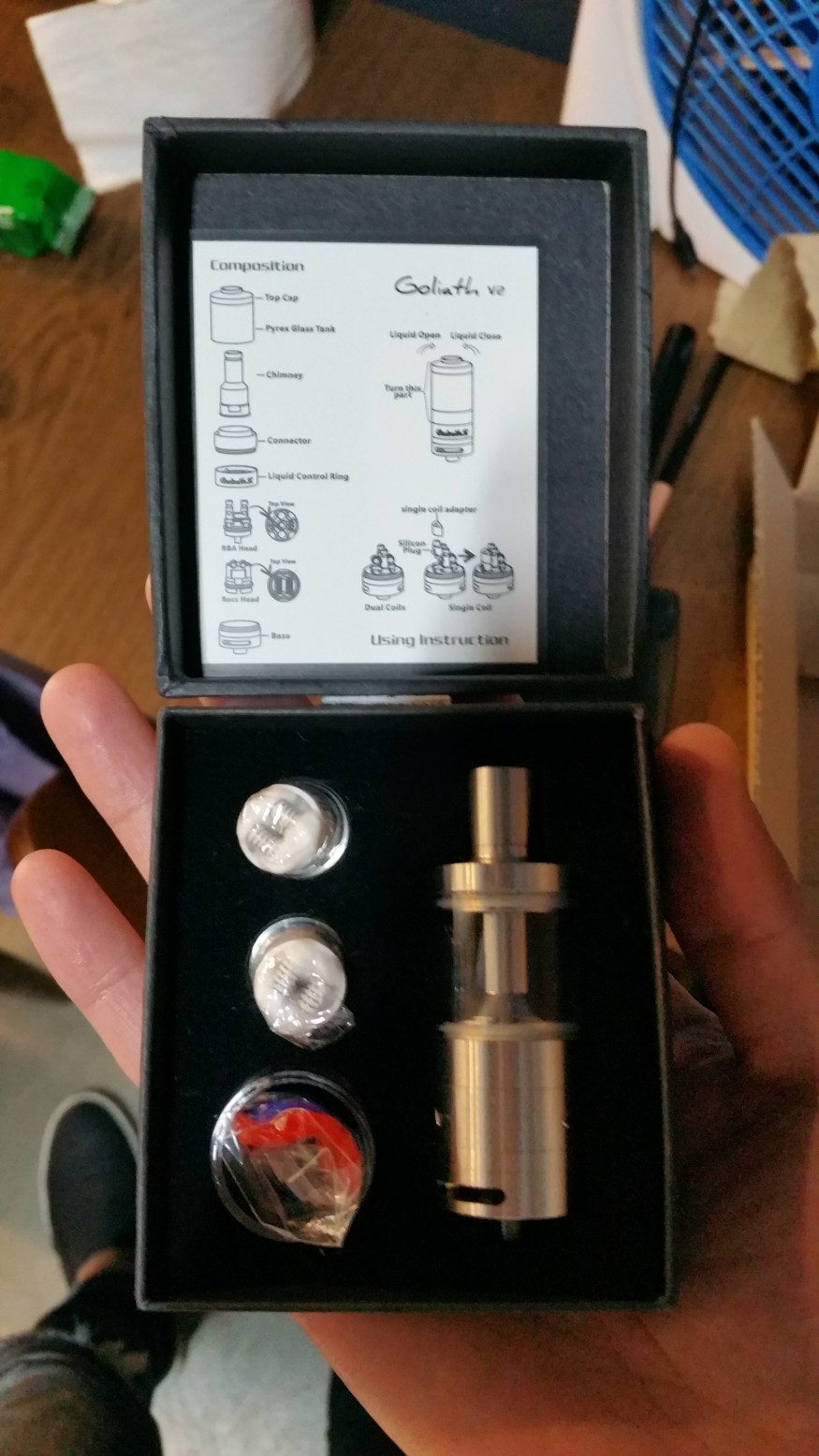 내일 올 줄 알았더니 오늘 오네요~ 급해서 물에 대충 씻고 들어있는 코일 꼽고~액상넣고~잠구다가.... ㅋㅋㅋㅋ돌려 끼우면 액상 유입구 열리는거 몰라서 액상 다 쏟아지고~다시 넣고 펴보니 좋습니다~ㅋㅋㅋ 그런데 잠구다보니 손가락 살이 찢어지네요;; 뭐기 묻은건지 겉에 기스같은게 좀 보이고 기스야 뭐 신경 안쓰니 닦이면 닦는거고 아님 마는거죠~그런데!!!클미니 들고왔더니 30w는 좀 부족하네요;; 이빅만 들고 다녀야 겠습니다~~~~~~