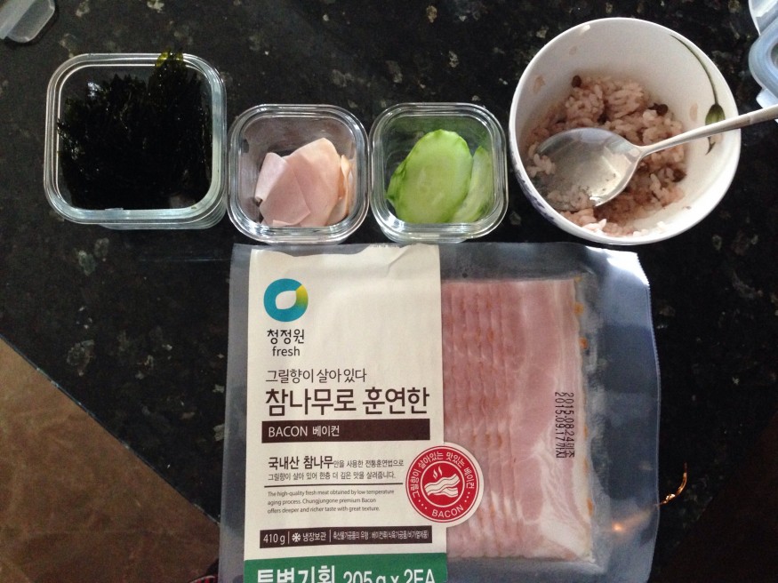 밥, 김, 얇은 햄, 오이