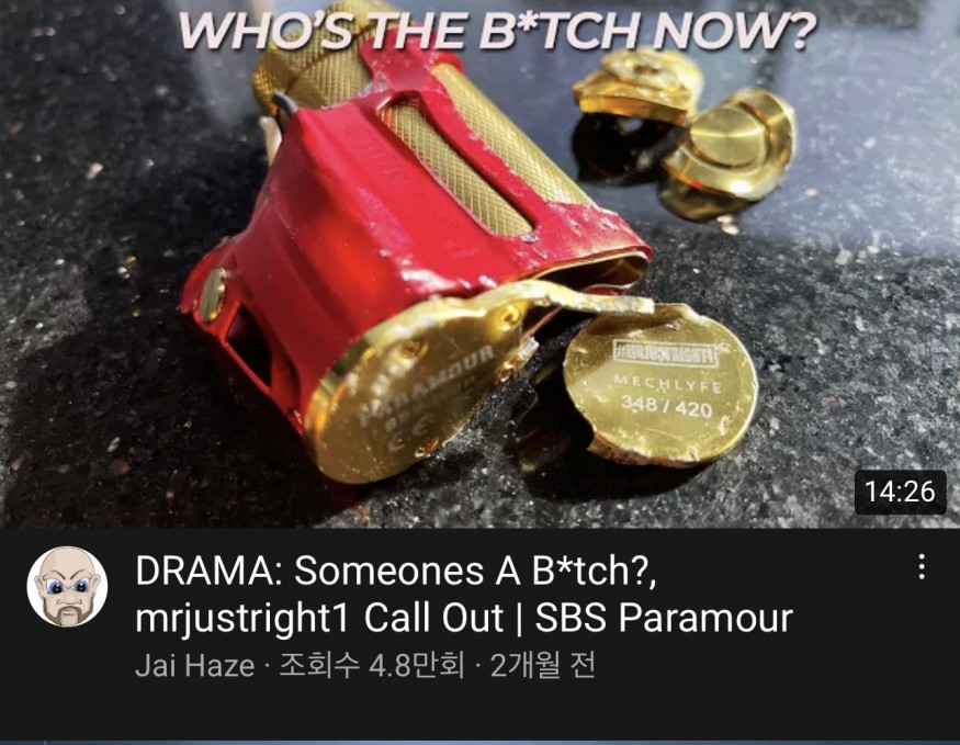저 아저씨가 그지같다고 뽀갠겁니다. (링크하신 영상에서는 대충 14초 조금 전에 망치로 내리치는 부분 보여주네요) 전에도 자기가 이건 극심하게 잘못만든거다 싶은애들은 가게 옆 벽에다 던지고 밟고 함마로 내리 치고 했어요. https://youtu.be/cwQCjXSI7mU 요건 SXmini X class 뽀갠영상입니다. (대충 17분 30초 부터 뽀갬) 덤으로 저 아저씨가 파라무어 디자인 한(혹은 했다고 하는) Mr. Justright1 이랑 사이가 좀.... |