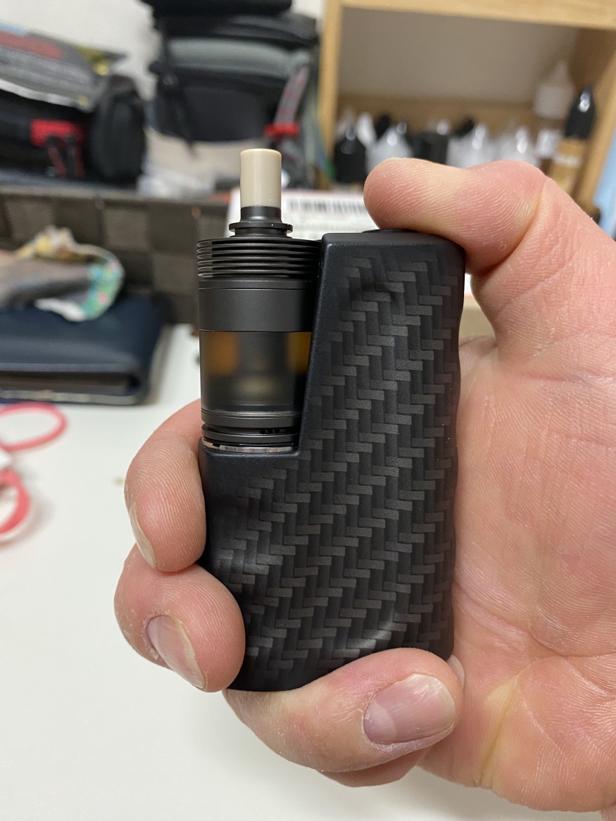 아무래도 높이가 낮은 무화기나 드립팁은 파이어시 엄지손가락이 얼굴에 닿을 수 있는데, 사진의 파이오니아의 경우 큰 간섭이나 불편함 없이 베이핑이 가능합니다^^
