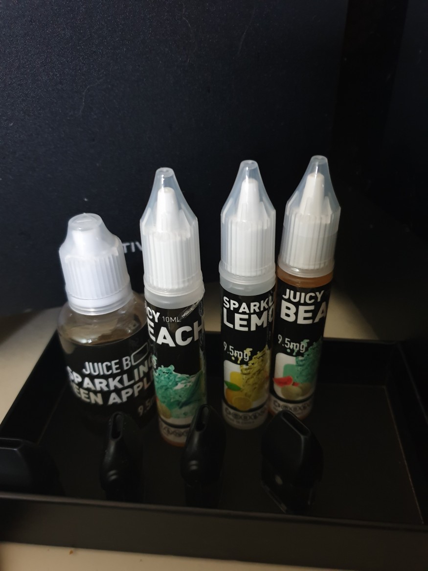 쥬시박스 액상을 구매했는대 이중 비치.레몬.애플이 입에 맛 더군요..근대 이게 아직 숙성이 덜되서 그런지 tfn9미리 인대 혀가 따꼼 하네요