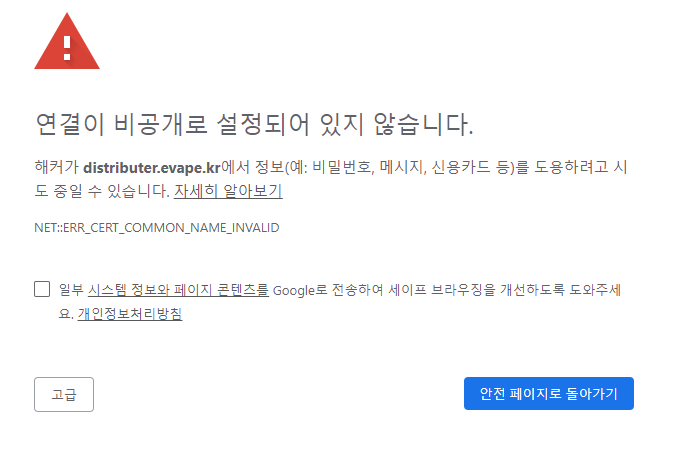 크롬에서 이벺이 신뢰할 수 없는 페이지라고 뜨네요 댓글+1개