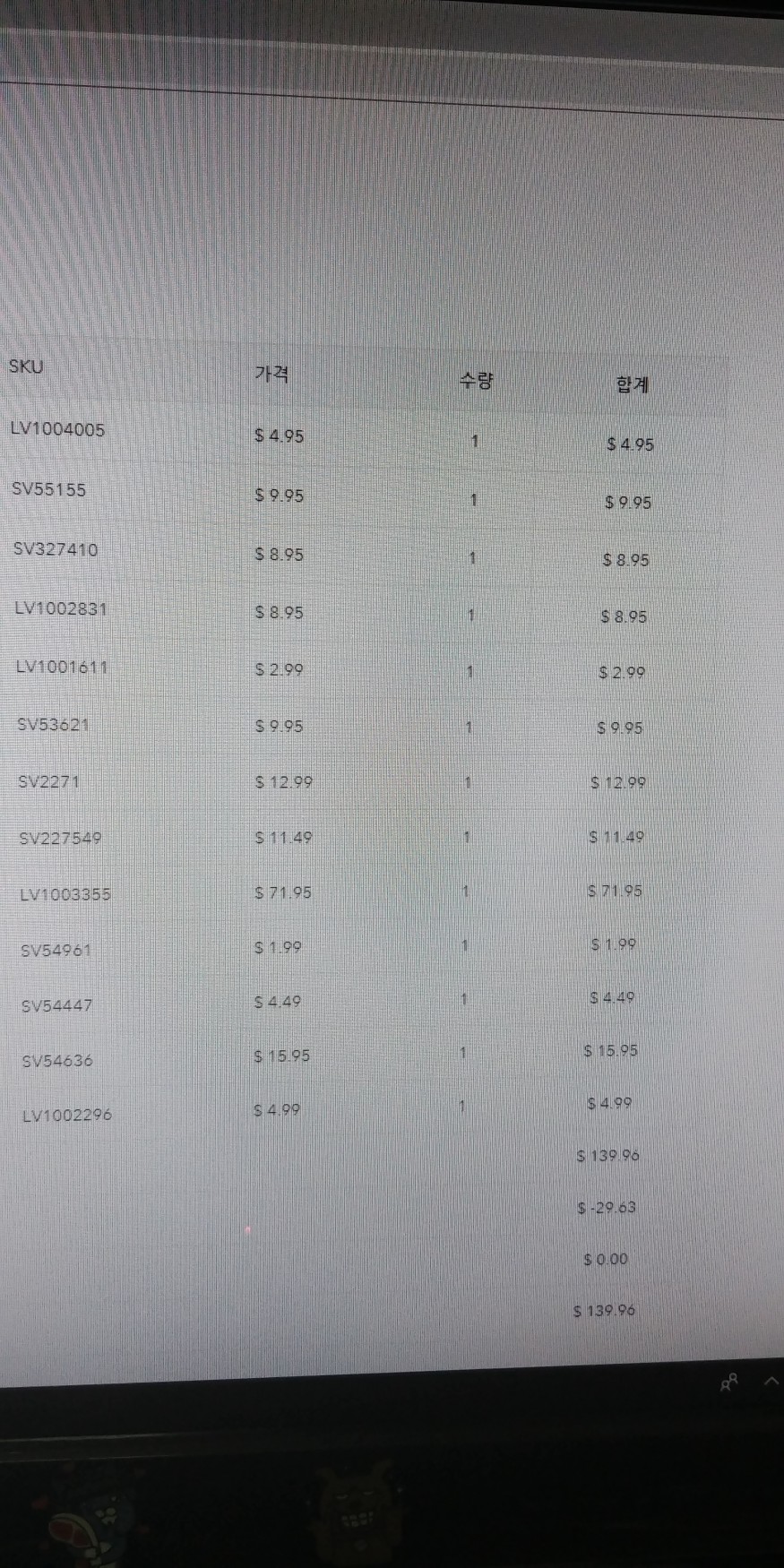 각 제품 할인된 가격이 안나오는데 어쩌나요 ㅠㅠ