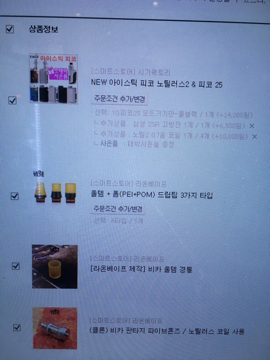 피코25+비카조합 구매목록인데