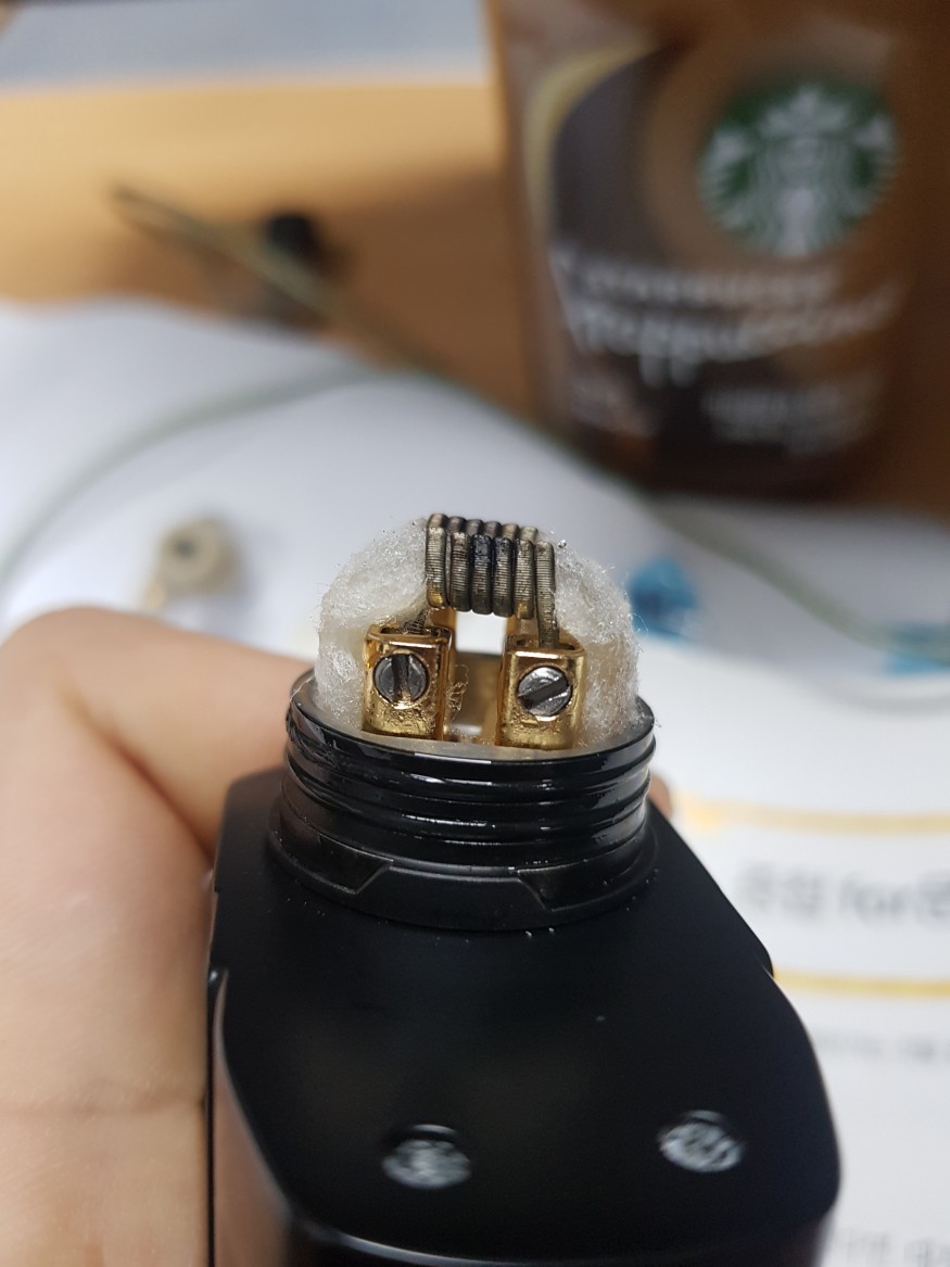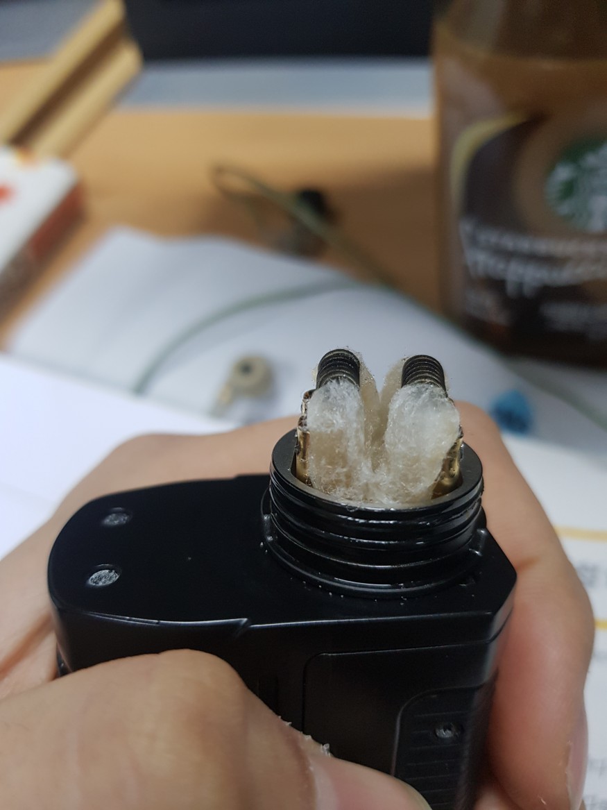 코일은 zn08 6바퀴 듀얼로 빌드했고 기기따라서 0.21~0.19옴 나오고 코튼베이컨입니다 . 4.5볼트~3볼트해봐도 생각했던 느낌이 아니네요 액상은 네스티 슬로우블로우입니다 가변기기는 dovpe사의 vee입니다 베이핑 하기전에 충분히 액상적셔주었습니다... 아 그리고 제가 전자과라 옴의법칙 와트계산에는 특화돼있습니다.°_°