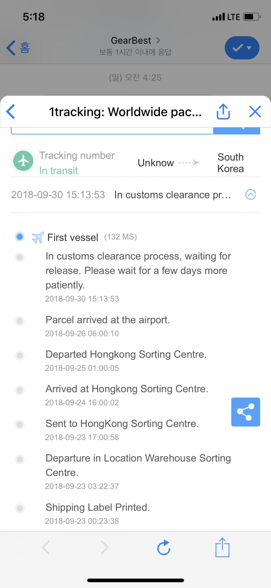 통관절차에서 통과되기를 기다리고 있다.....조금만 더 인내를 가지고 몇일만 기다리라고 하네요 |