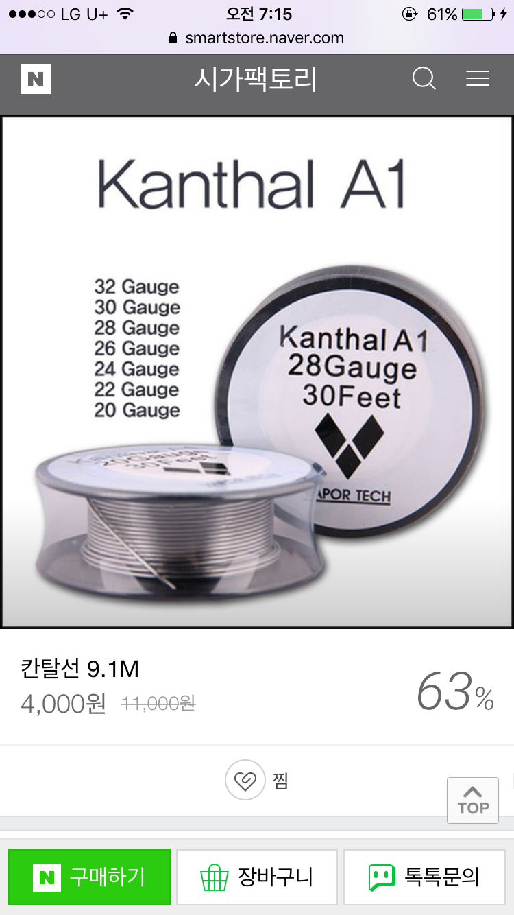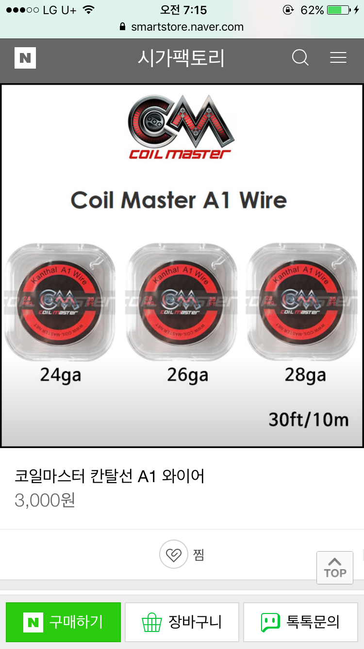 입홉 와이어는 칸탈 26게이지 2.5미리 6바퀴가 좋다고