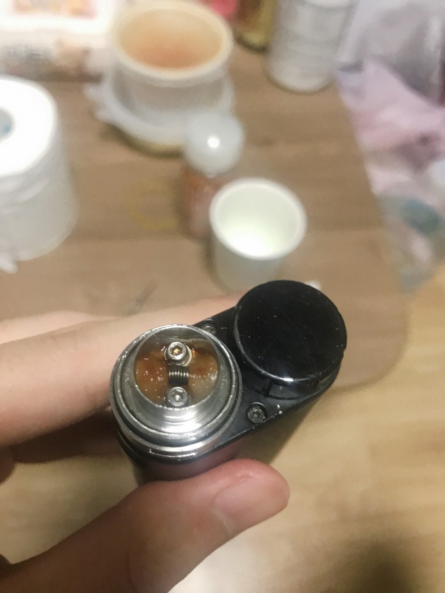 그결로가 경통을타고 내려가거나,드립팁쪽에 서 솜으로 떨어지거나 하면서 색이 사잔과같이 변합니다. 큰 문제는 아니니 신경쓰지마시고 맛있게 베이핑하시면되요. 해당 액상만 해당되는게 아니라, 왠만한 액상들은 다 해당되는 이야기예요 |