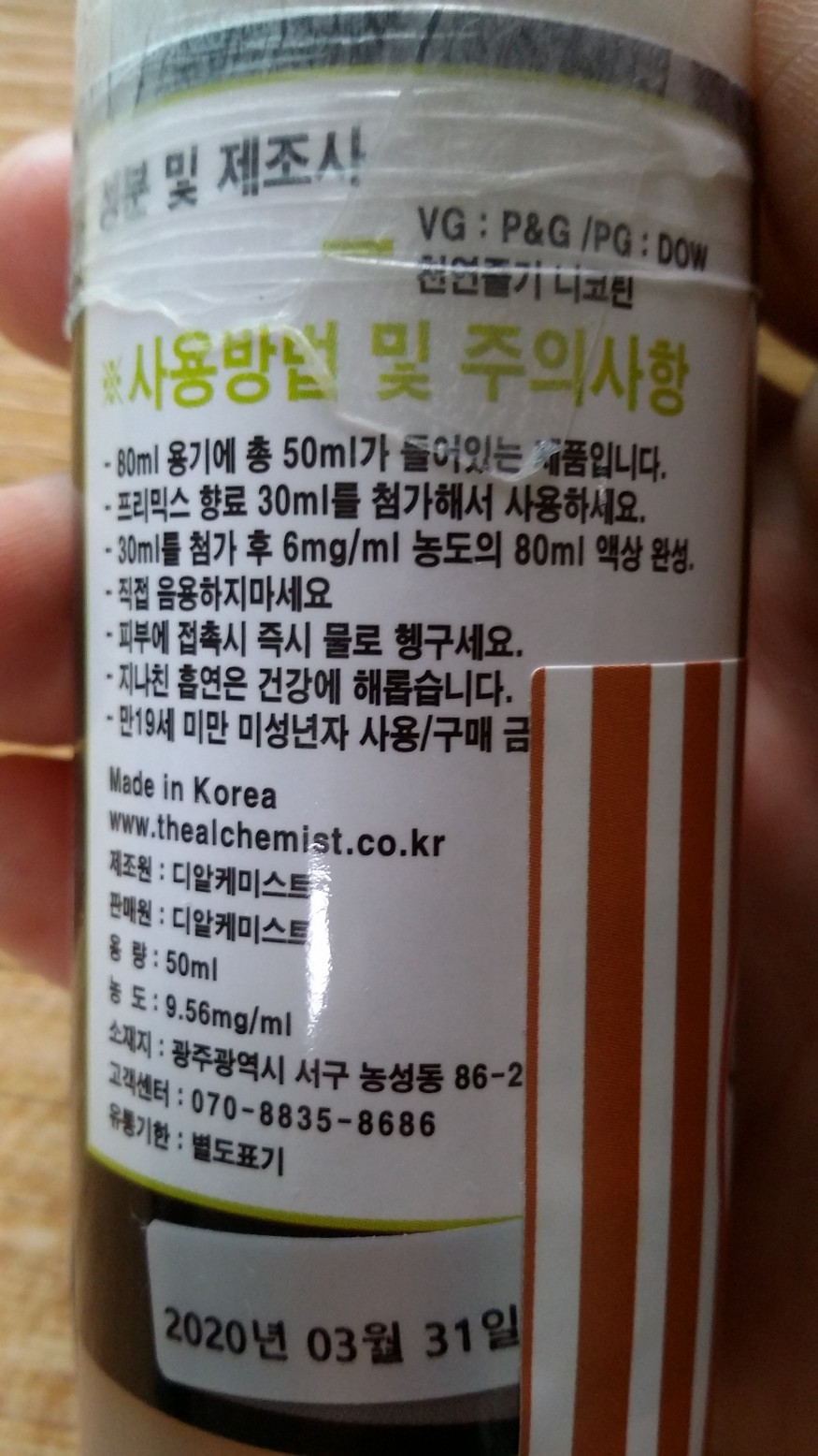 아직 숙성중이라 맛은 못 봤지만 혹시 향이 너무 독하거나 해서 pg를 10미리나 20미리로 섞어서 총 90ml나 100ml를 만든다고 했을 시