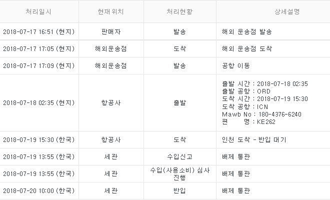 세관에서 안잡히고 무리없이 진행 된다면 내일 받으실 수 있을거에요~ |