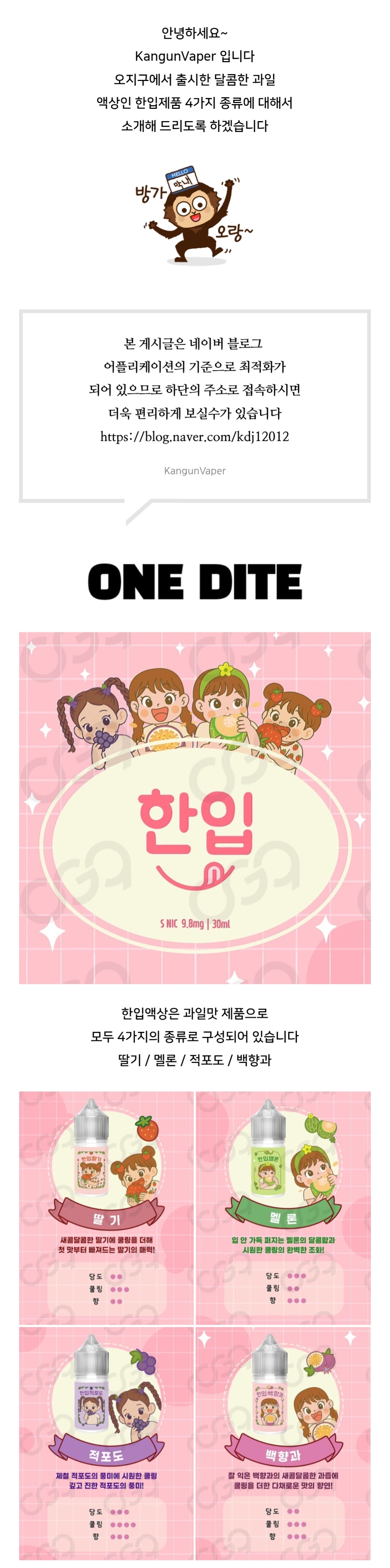 업체지원 | 오지구(OG9) 한입(ONE DITE) 딸기 / 멜론 / 적포도 / 백향과 과일멘솔 입…