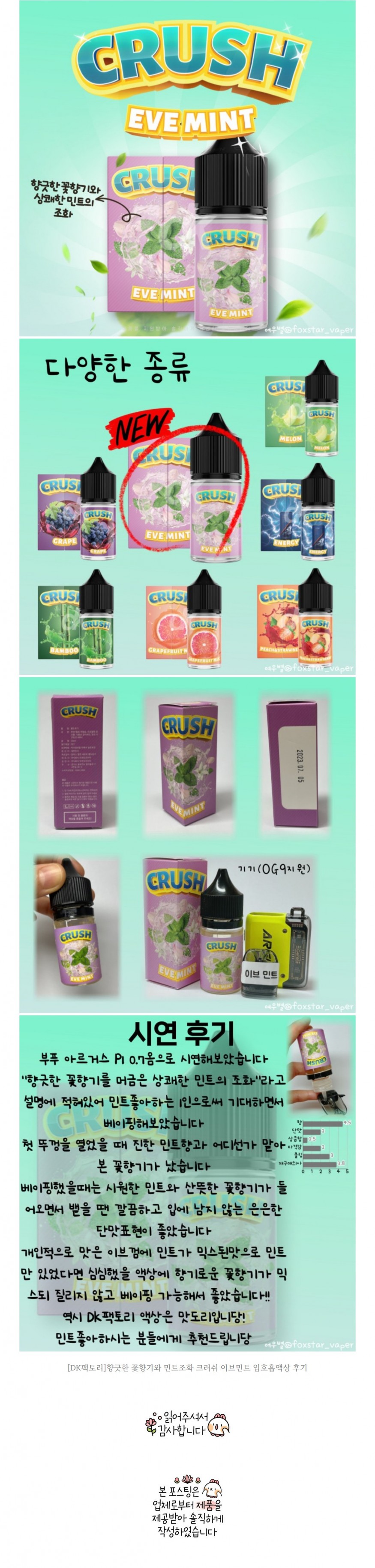 [디케이팩토리] 크러쉬 이브 민트(CRUSH EVE MINT) 입호흡액상 후기