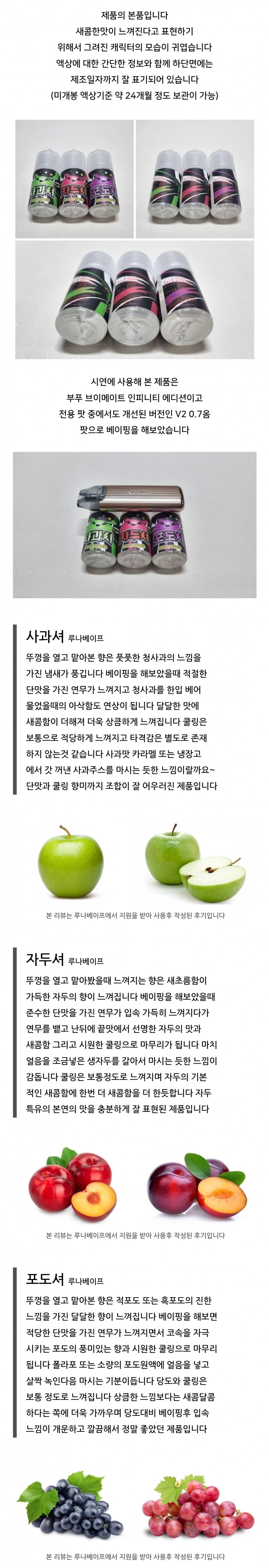 [루나베이프] 루나셔액상 3종 자두셔/사과셔/포도셔 입호흡 액상 후기