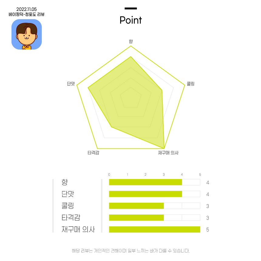 맛, 향 한줄평 : 아이스 청포도 에이드