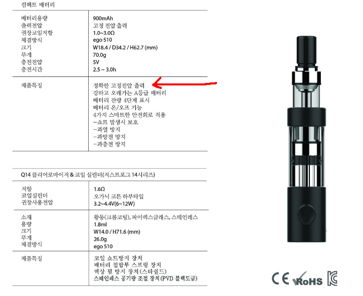 Q14 카토마이저? + 매립형배터리(카토미니와 비슷한 스타일) + 코일 (1.6옴)
