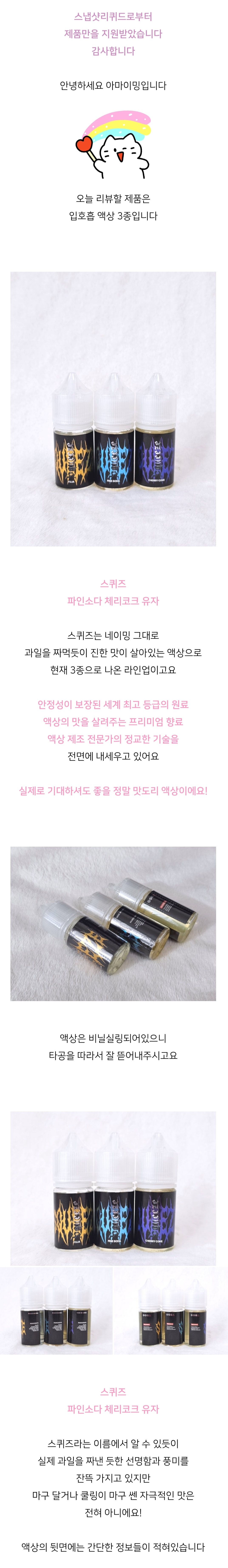 스퀴즈액상 프리미엄 향료로 제작된 맛있는 입호흡 액상 3종 솔직후기