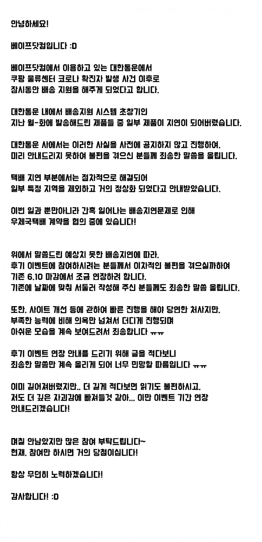 | 열람중 | [베이프닷컴] 후기 이벤트 연장안내 (~6.15)					댓글+2개   | 베이프닷컴